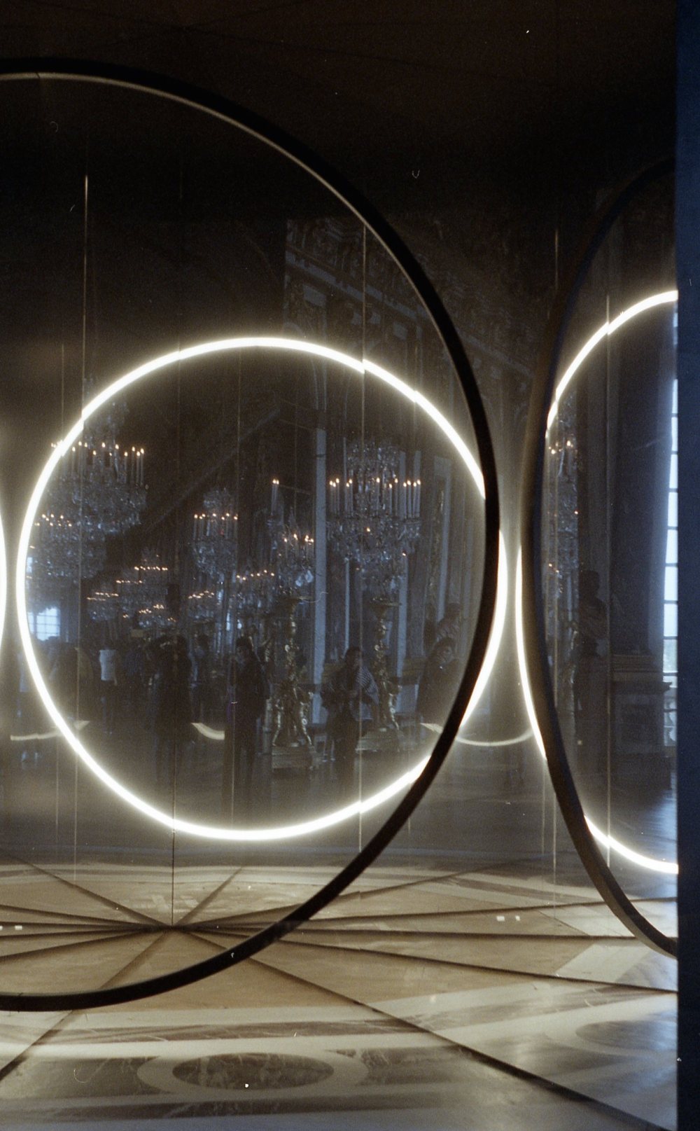 For being one of Olafur Eliasson’s works it is minimal and simple, but it is also one of his first pieces. For me, it is an image of his process and a great example of what I think is so amazing with his work; he makes me rediscover the fan. The fan is still a fan, but the spirit of the fan seems to been set free. He gave it a new purpose and it make me wonder if I missed qualities like this in other materials and objects. Do I really know what a spoon want, or what a flashlight want or in which other context I could find them? It expands my horizon of what the objects are and what the world can be. Seeing Clara Briceño’s pictures [for CHEVET Magazine] from Eliasson’s summer exhibition in Versailles (France) creates the same feeling in me. The elegant Solar Compression, 2016, two large, convex, mirrors attached to each other hanging from the ceiling.